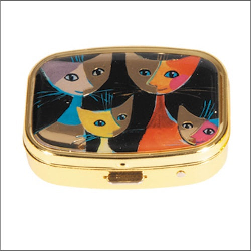 Gyógyszertartó doboz Fridolin Wachtmeister ´Négy macska´ kisméretű, fém, aranyszínű