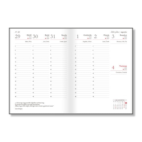 - bőséges hely jegyzetekhez, feladatlistákhoz és fontos gondolatokhoz.