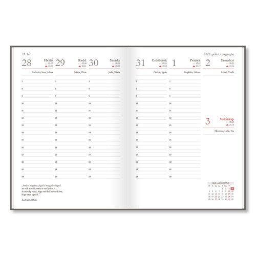 - bőséges hely jegyzetekhez, feladatlistákhoz és fontos gondolatokhoz.