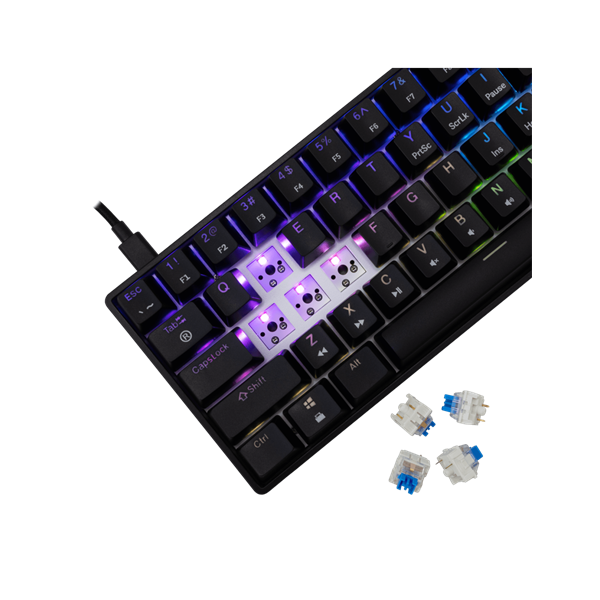| leírás | vezetékes mechanikus hot swap gamer billetyűzet, fekete színben, kék kapcsolók, full anti-ghosting | |||
