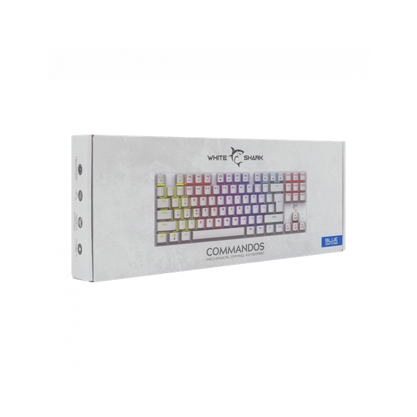 WHITE SHARK WS GK-2106W/BL-HU COMMANDOS fehér mechanikus billentyűzet, magyar, 88 kék gomb