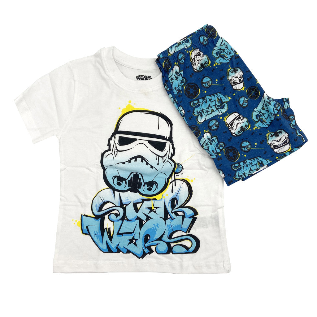 Star Wars gyerek rövidujjú pamut pizsama - Kék/Fehér - 122