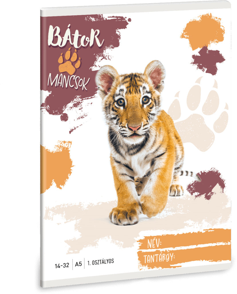 Bátor Mancsok tűzött füzet A/5, 32 lap vonalas 1.osztály (14-32), tigris
