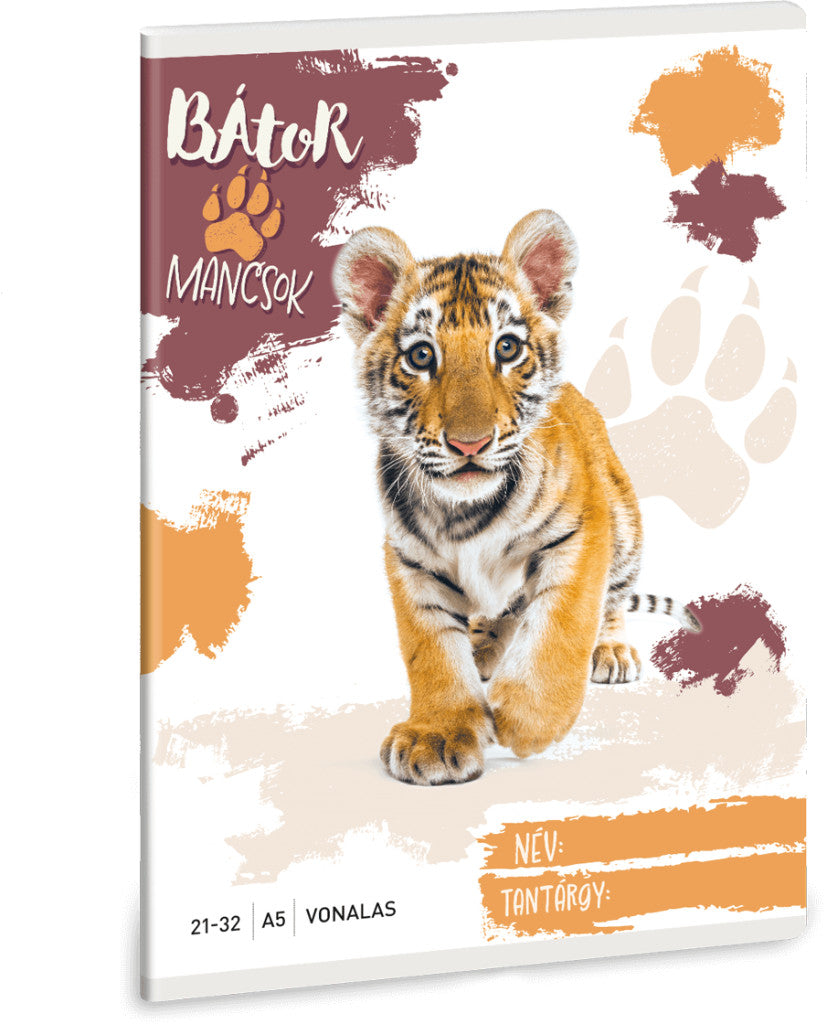 Bátor Mancsok tűzött füzet A/5, 32 lap vonalas (21-32), tigris