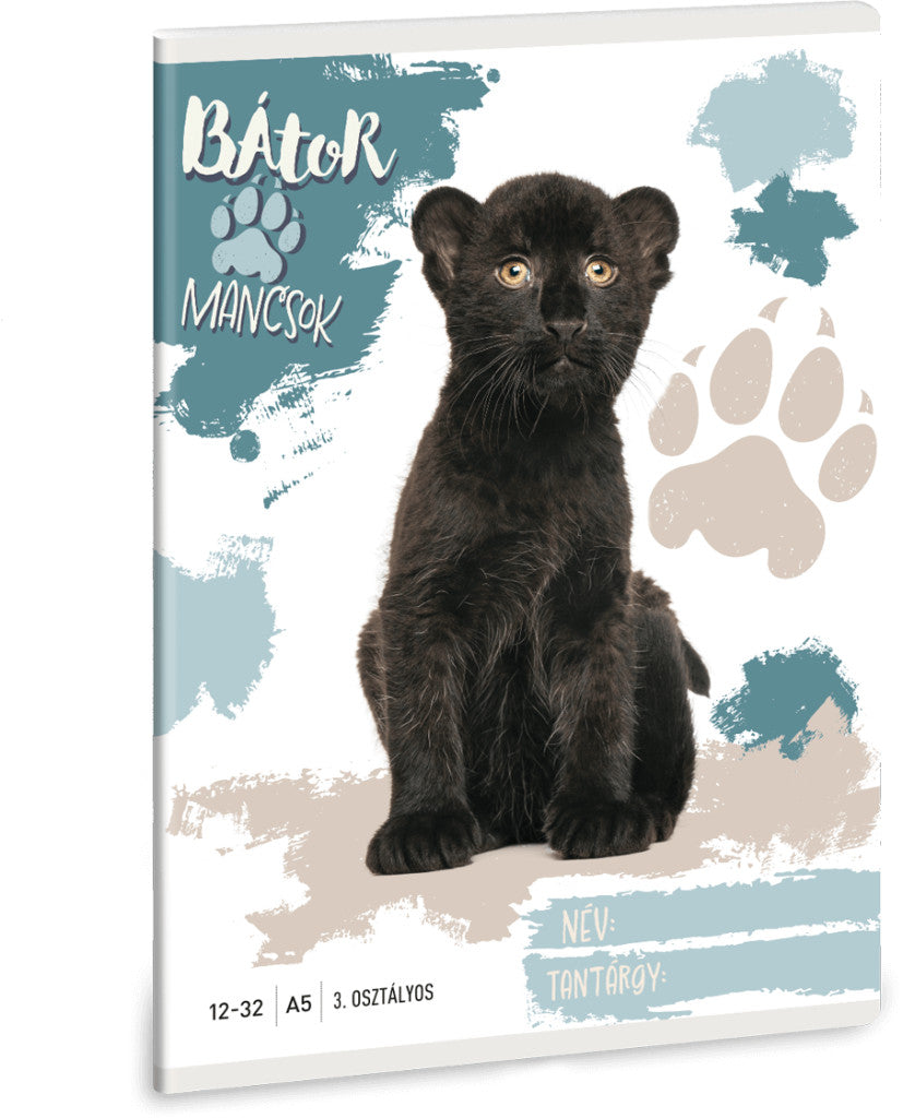 Bátor Mancsok tűzött füzet A/5, 32 lap vonalas 3.osztály (12-32), fekete párduc