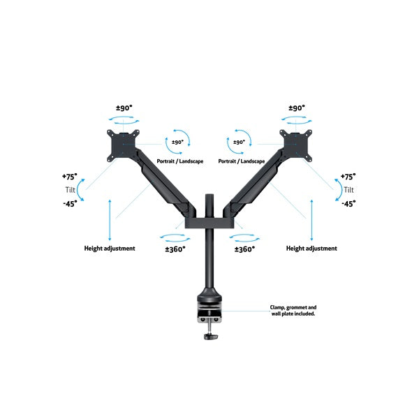 MULTIBRACKETS 2 karos asztali konzol, M VESA Gas Lift Arm Dual Black (15-32", max.VESA: 100x100 mm, 10 kg)