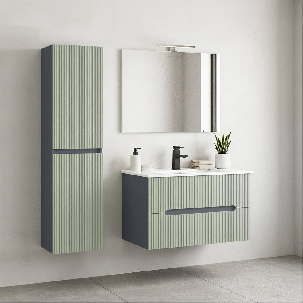 A Leziter Trent függesztett oldal szekrény letisztult, modern megjelenésével tökéletes kiegészítője bármely Trent fürdőszobabútornak – vagy önálló tárolóként is ideális választás. A bordázott frontok harmonikusan illeszkednek a minimalista és skandináv stílusú enteriőrökbe. Praktikus méreteinek köszönhetően kényelmes tárolóhelyet kínál anélkül, hogy értékes padlófelületet foglalna.