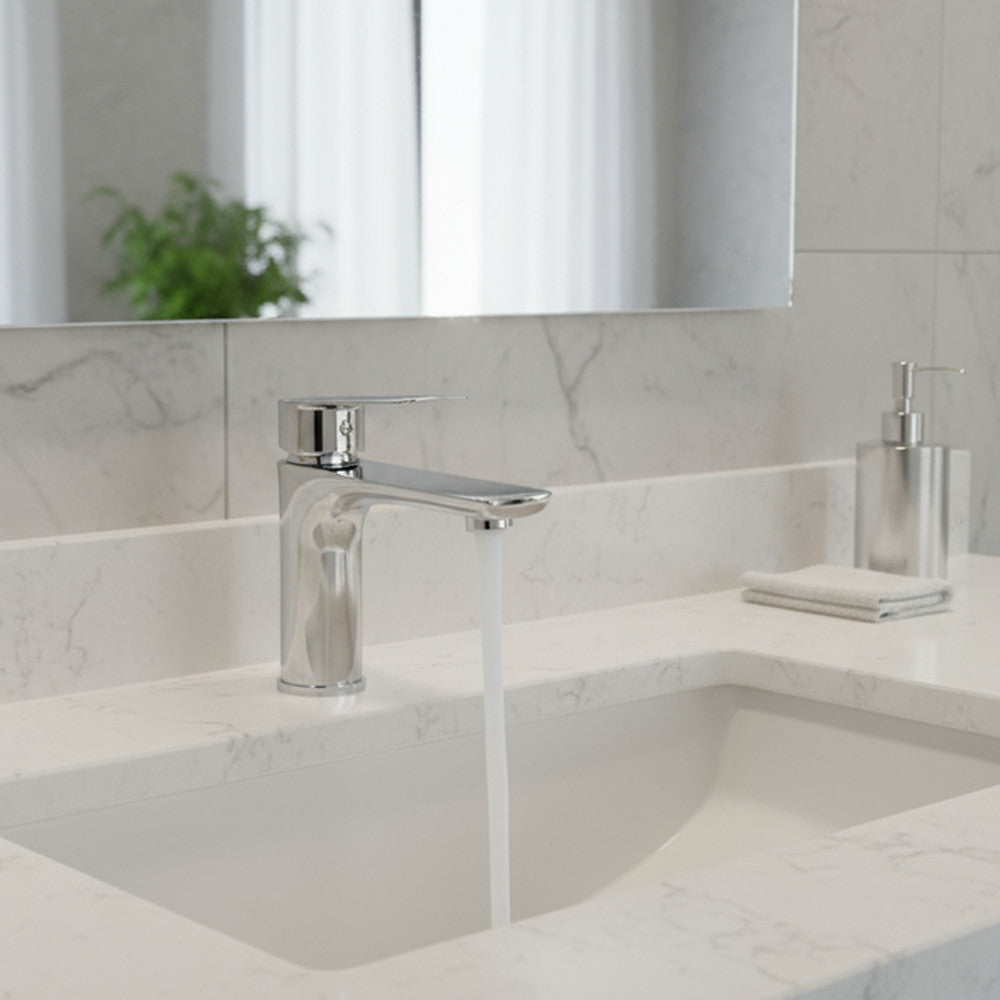 Az Auri mosdó csaptelep a funkcionalitás és a dizájn tökéletes harmóniáját kínálja. A fényes krómozott felület elegáns, tükörsima megjelenést ad, amely bármilyen fürdőszobai stílusba illik – legyen az klasszikus, modern vagy minimalista.