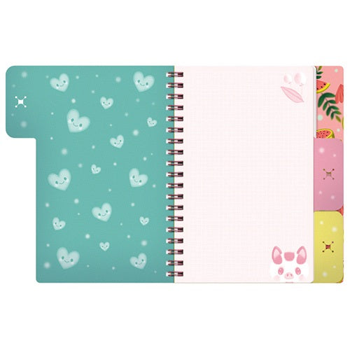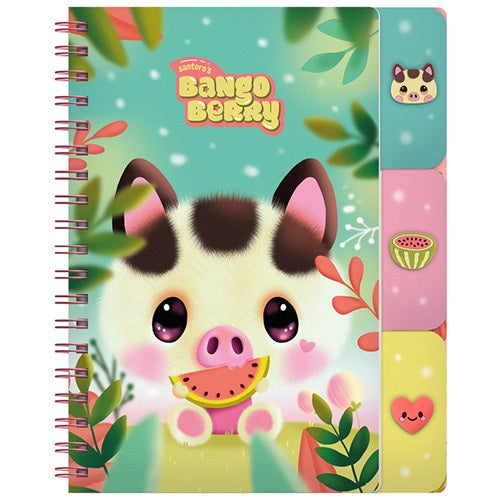 Füzet Bangoberry spirálos, elválasztókkal, 3db Bangobobbal, malac mintával