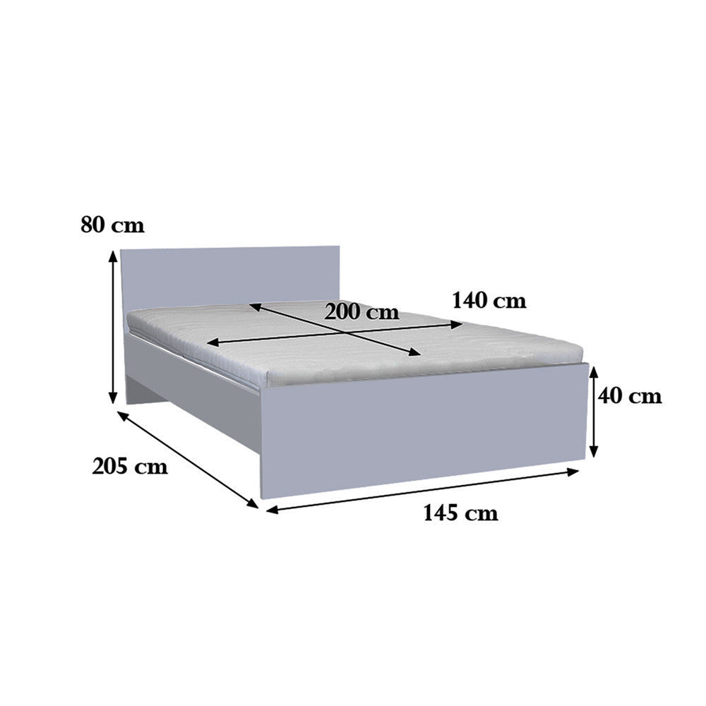 Méretek Ágykeret: 205 x 145 cm, Ágytámla: 80 x 145 cm, Matrac (ajánlott méret): 200 x 140 cm.
