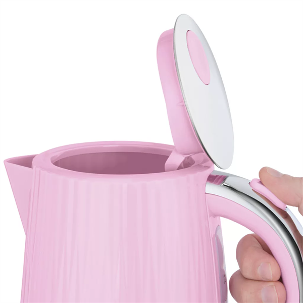 Komfortos, háztartási elektromos vízforraló málna színben, gyors és egyszerű forró italok, tea vagy főzéshez szükséges víz előállításához.