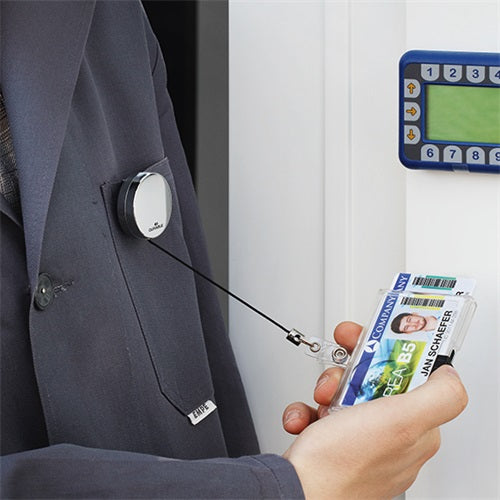 - strapabíró, kihúzható névkitűzőtartó, stílusos, króm design-ban.