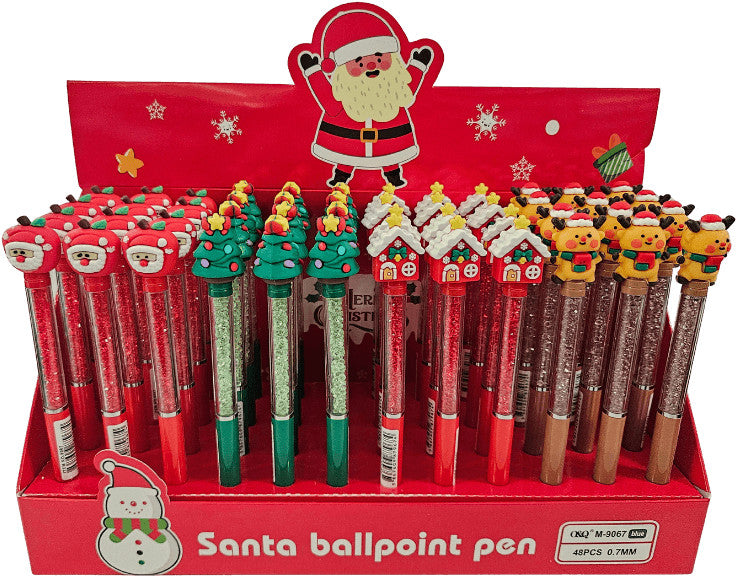 Karácsonyi golyóstoll, kristályos tolltest, 0,7mm, 4 féle figurával (M-9067)
