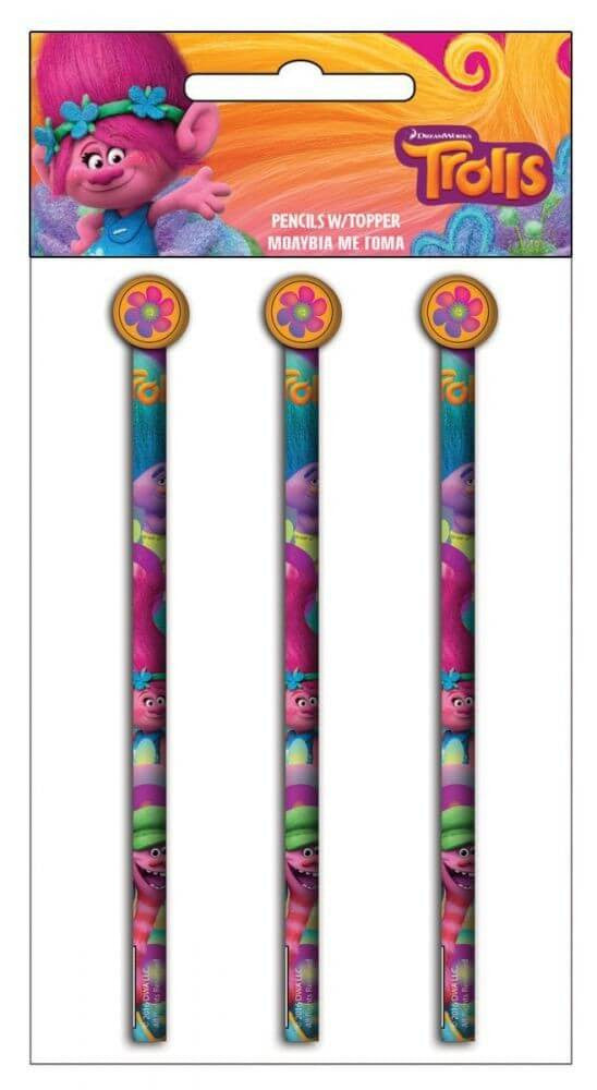 Trolls grafitceruza nagy kerek radírral, 3 db/csomag