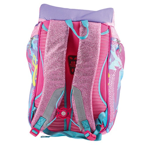 A hátizsák anyaga vízálló, háromszor varrott, és magas minőségű poliészterből készült. A reflektív biztonsági szalagok és az állítható vállpántok növelik a viselő biztonságát és kényelmét. A hátizsák könnyű, de mégis tartós, és oldalsó zsebekkel rendelkezik. Az anatómiai formájú hálós hátrész szellőzést biztosít, és a nyomott bélés stílusos megjelenést kölcsönöz. A cipzárak SBS fém húzókkal vannak ellátva, és a díszítés sublimációval és gumi jelvényekkel történik.