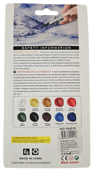 Tempera készlet, 10x6ml, tubusos, ecsettel, Matou (10618)