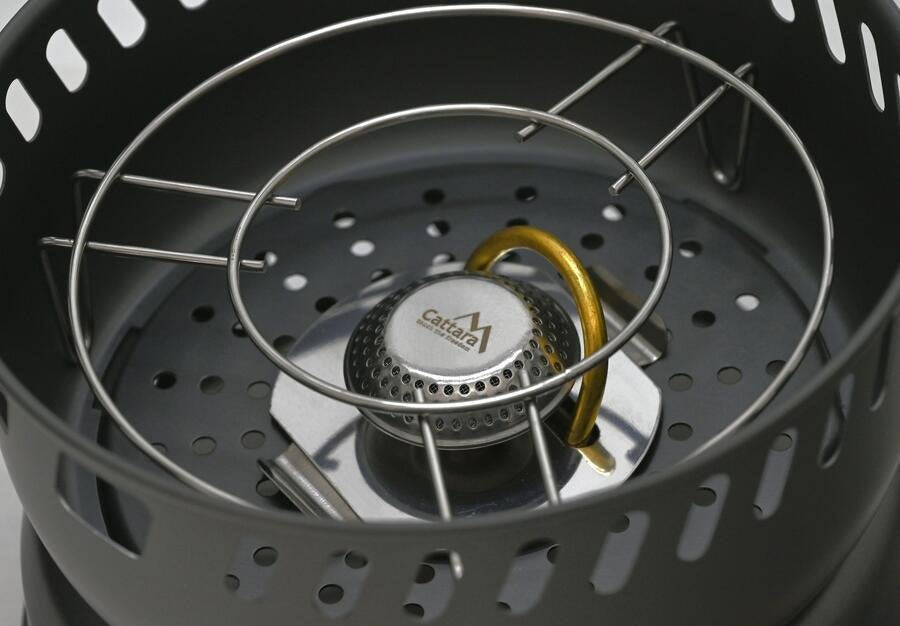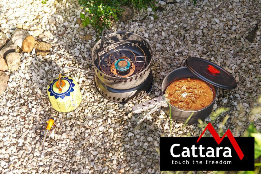 Főzz egy finom házias vacsorát útközben, vagy csak melegítsd fel. A Cattara TREK kültéri tűzhely edényekkel megkönnyíti az ebéd vagy a vacsora elkészítését még kempingezés közben is. A propán-bután tűzhely 20 x 6,5 cm-es alapból, szélvédő (19 x 8 cm), rács és égőből áll.