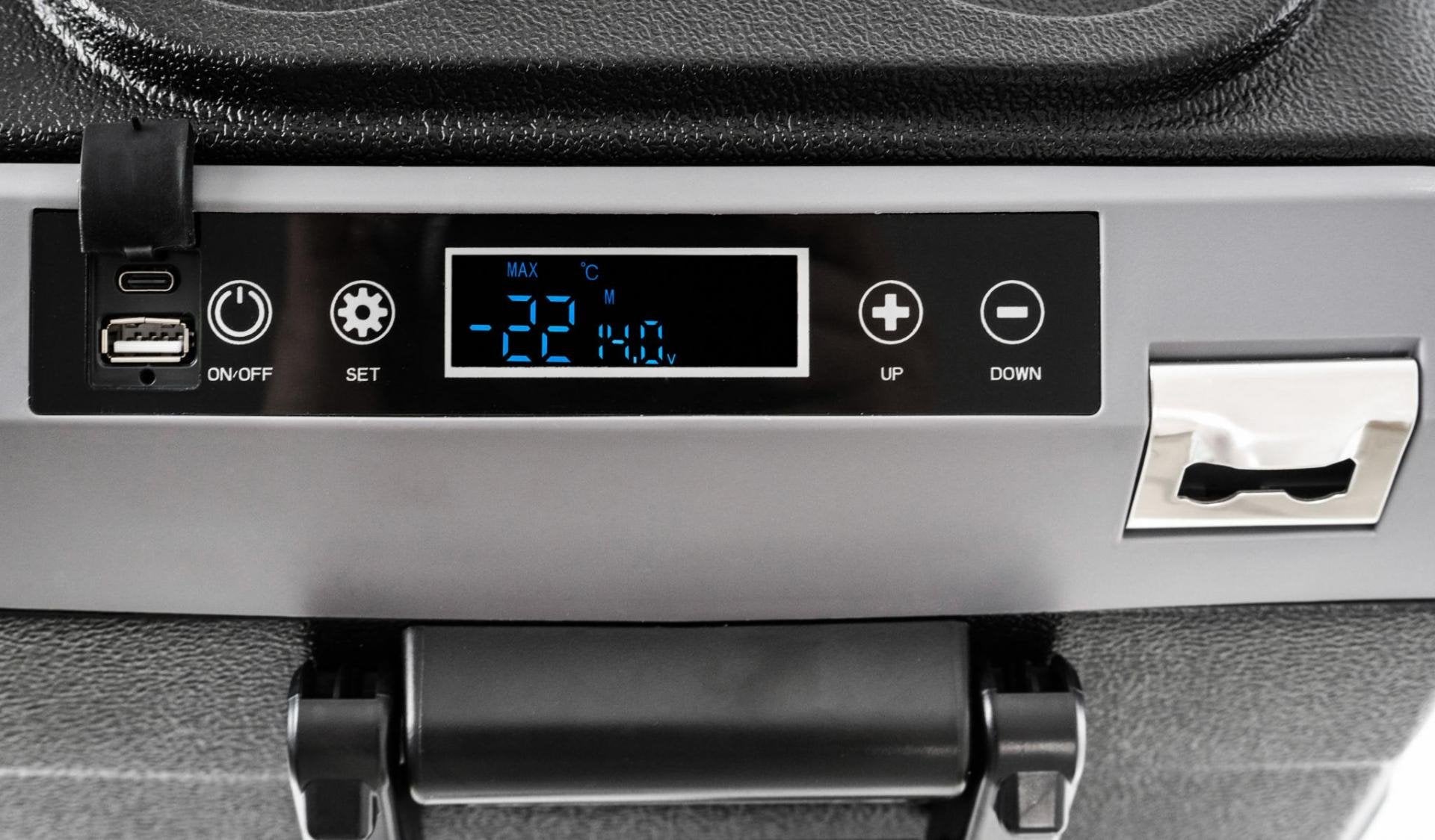 A megfordítható nyitható fedélnek köszönhetően nem kell a hűtőtáskát a csomagtartóban tapogatóznod és forgatnod. Két oldalról is könnyen hozzáférhető. Kempingezéskor értékelni fogod a beépített palacknyitót. És az is nagyszerű, hogy az autós hűtőről USB segítségével feltöltheted mobiltelefonodat, fejhallgatóidat és más eszközeidet. Két porttal rendelkezik - klasszikus USB és USB-C.