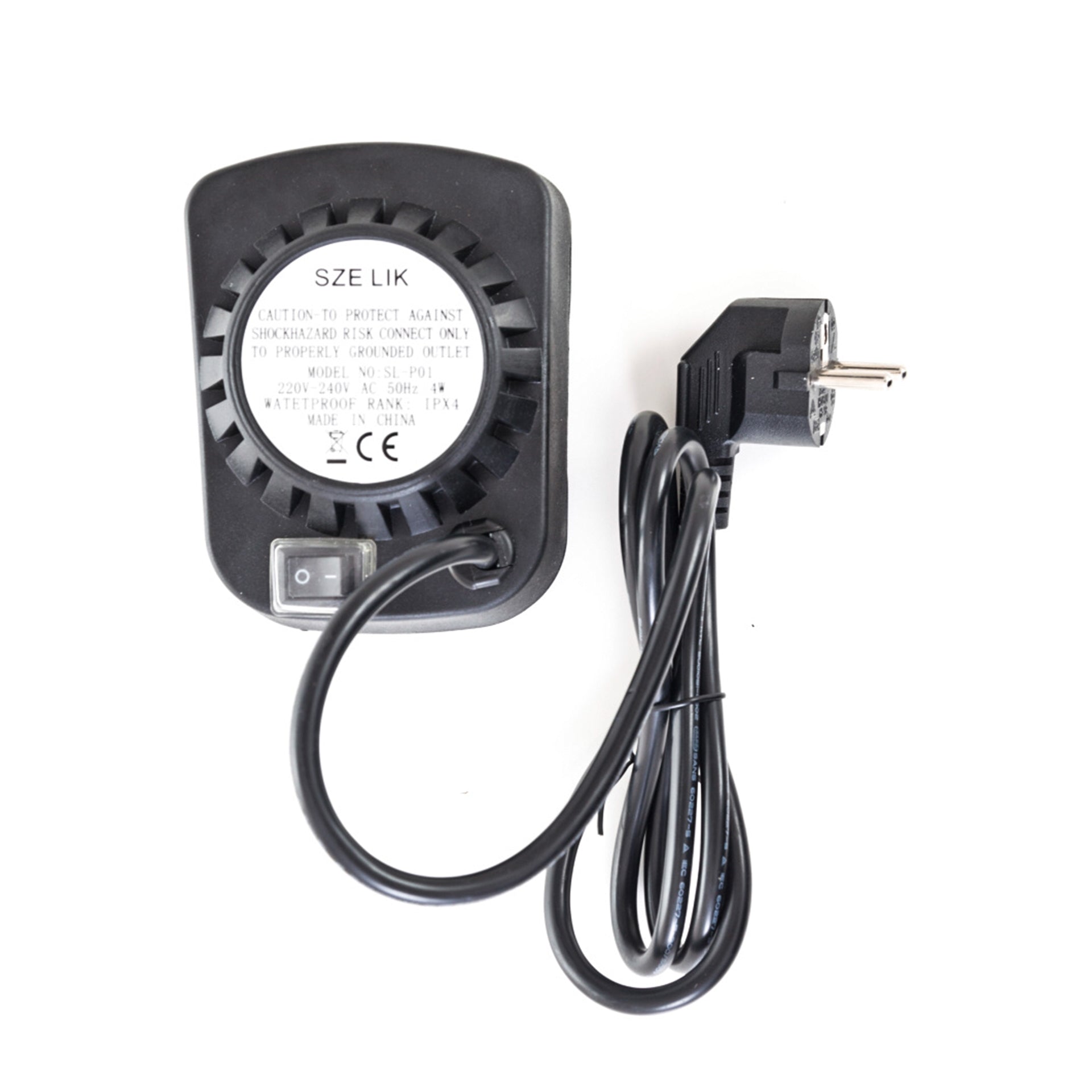 Az egyik oldalon a nyárs levehető műanyag fogantyúval van ellátva, amelyen egy praktikus akasztógyűrű is található. A másik végén egy motor található műanyag házban, amelyen egy be-/kikapcsoló gomb is helyet kapott. A 230 V feszültségű motor egyszerűen csatlakoztatható a hálózathoz a kb. 125 cm hosszú kábel segítségével. A motor körülbelül 2 fordulat/perc sebességgel forgatja a nyársat, így az étel nem ég meg, hanem egyenletesen sül át.