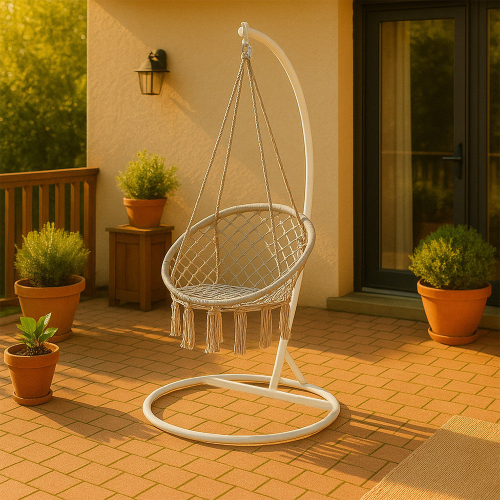 Fehér függőfotel állvány – stabilitás és szabadság, bárhol