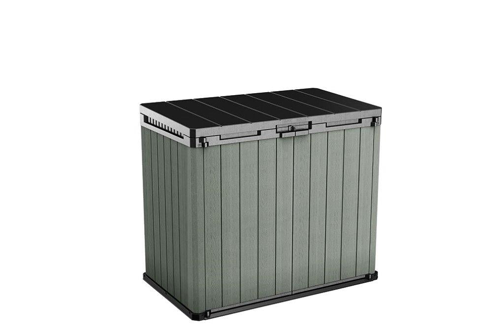 Helyezze el a tárolódobozt az Ön számára legideálisabb helyre a kertben vagy a teraszon. A fa hatású struktúrának köszönhetően bármilyen környezetbe remekül illeszkedik. A tárolt tárgyakat lakattal is biztonságosan lezárhatja (a lakat nem tartozék). A beépített szellőzőrendszer pedig védi a tárolt dolgokat a nedvességtől.