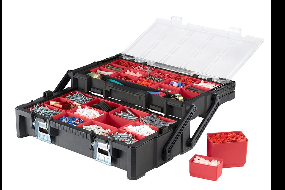A Cantilever 22 rendszerező a Keter márkától tökéletes megoldás az amatőrök és profik számára egyaránt. Legyen szüksége kis és közepes komponensek tárolására akár a munkában vagy a műhelyben, ezzel a 27 kivehető rekesszel minden ki lesz szortírozva.