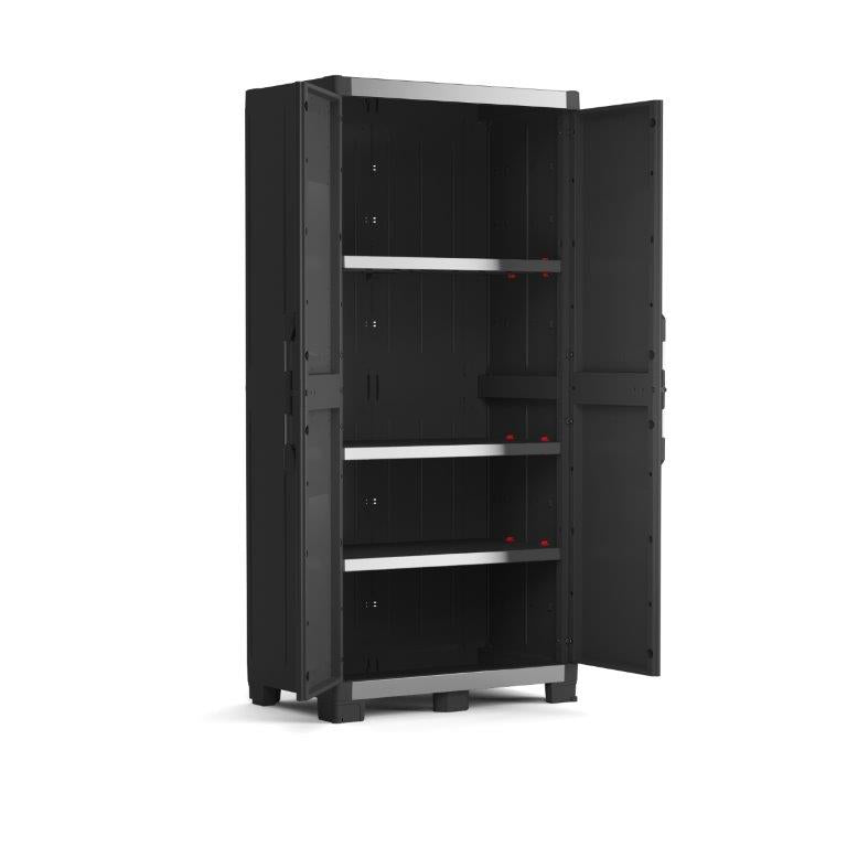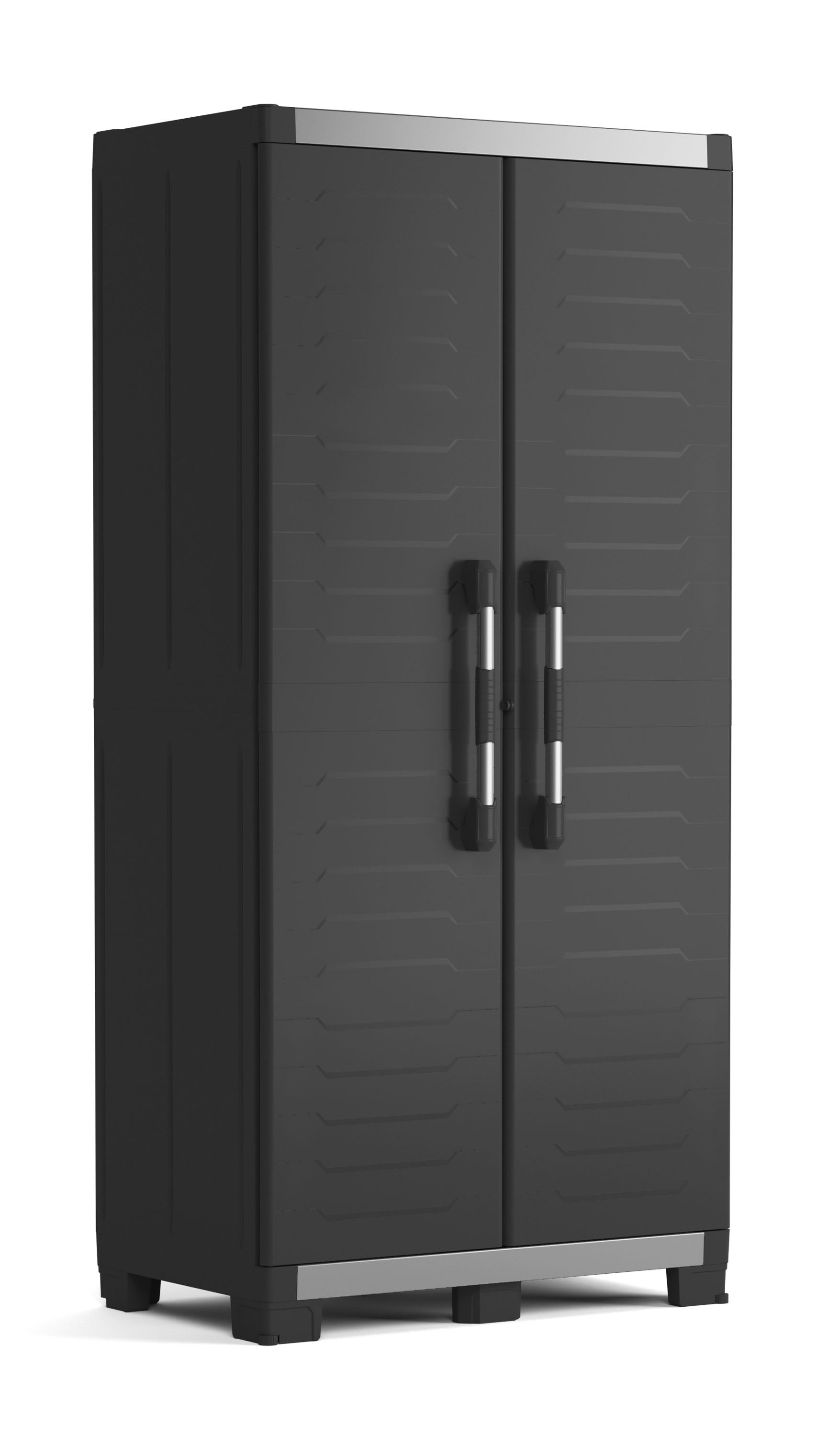 1. 1x Keter XL Garage High szekrény polcokkal, lábakkal és zárható ajtókkal