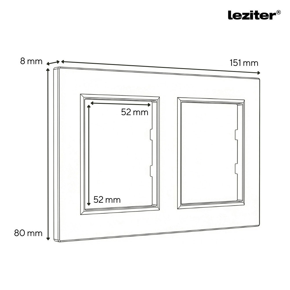 A Leziter Nova kettes keret két modul (pl. kapcsoló vagy csatlakozóaljzat) esztétikus és stabil fali rögzítésére szolgál, kompatibilis a Nova rendszer keret nélküli szerelvényeivel. A 83 × 150 mm-es, vízszintes elrendezésű, lekerekített peremű, süllyesztett kivitel letisztult megjelenést biztosít, kizárólag száraz, pormentes beltéri környezetben alkalmazható.