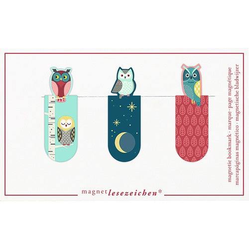 Ez a szett három divatos és életvidám témájú mágneses könyvjelzőt tartalmaz, amelyek tökéletesek a könyvek szerelmeseinek. A könyvjelzők különböző vidám mintákkal díszítettek: az egyik egy bagoly egy fán, a másik egy csillagos éjszakai égboltot ábrázol felette bagollyal, a harmadik pedig egy másik baglyot mutat bonyolult mintázattal a háttérben. Ezek a színes és játékos témájú könyvjelzők feldobják az olvasás élményét.