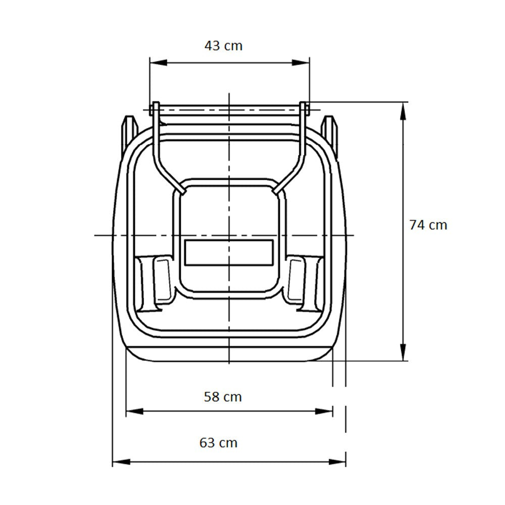A szemetes tömör gumikerékkel és ergonomikus fogantyúval rendelkezik, amely a könnyedséggel együtt jelentősen befolyásolja a mozgatás egyszerűségét .