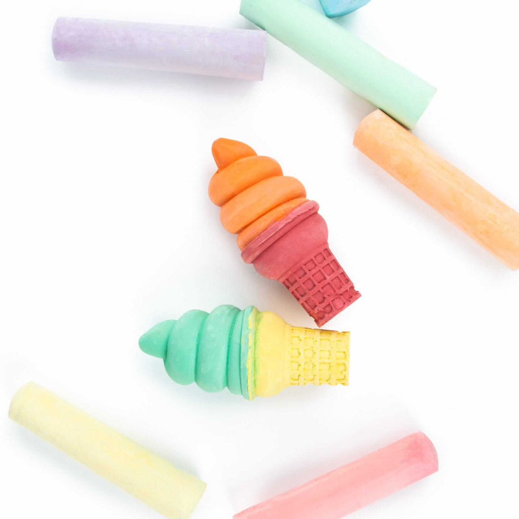A készlet tartalmaz 6 sima aszfaltkrétát és 2 db különleges csavart fagyi formájút.