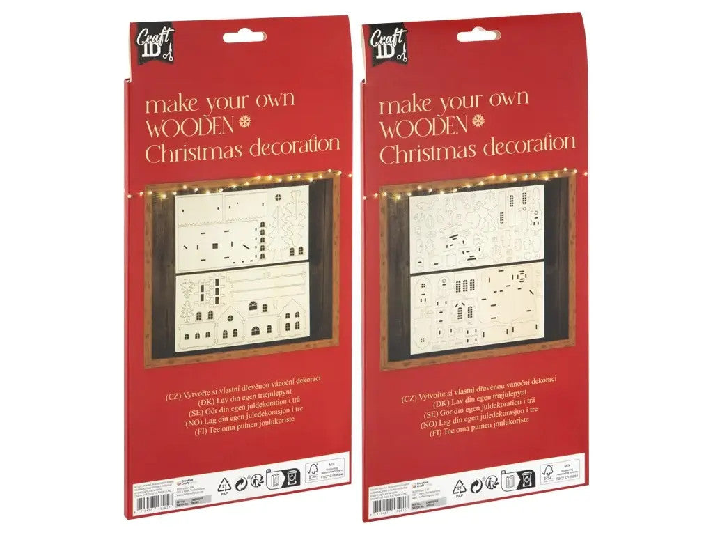 Készíts karácsonyi dekorációt a készlet segítségével. A szett tartalmazza a fa sablonokat, amelyek kipattinthatók a lapokból és összeilleszthetők.