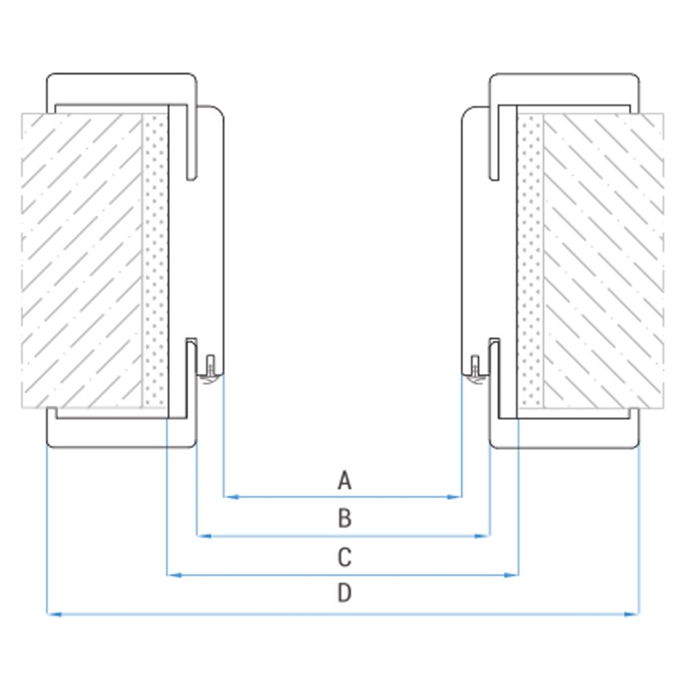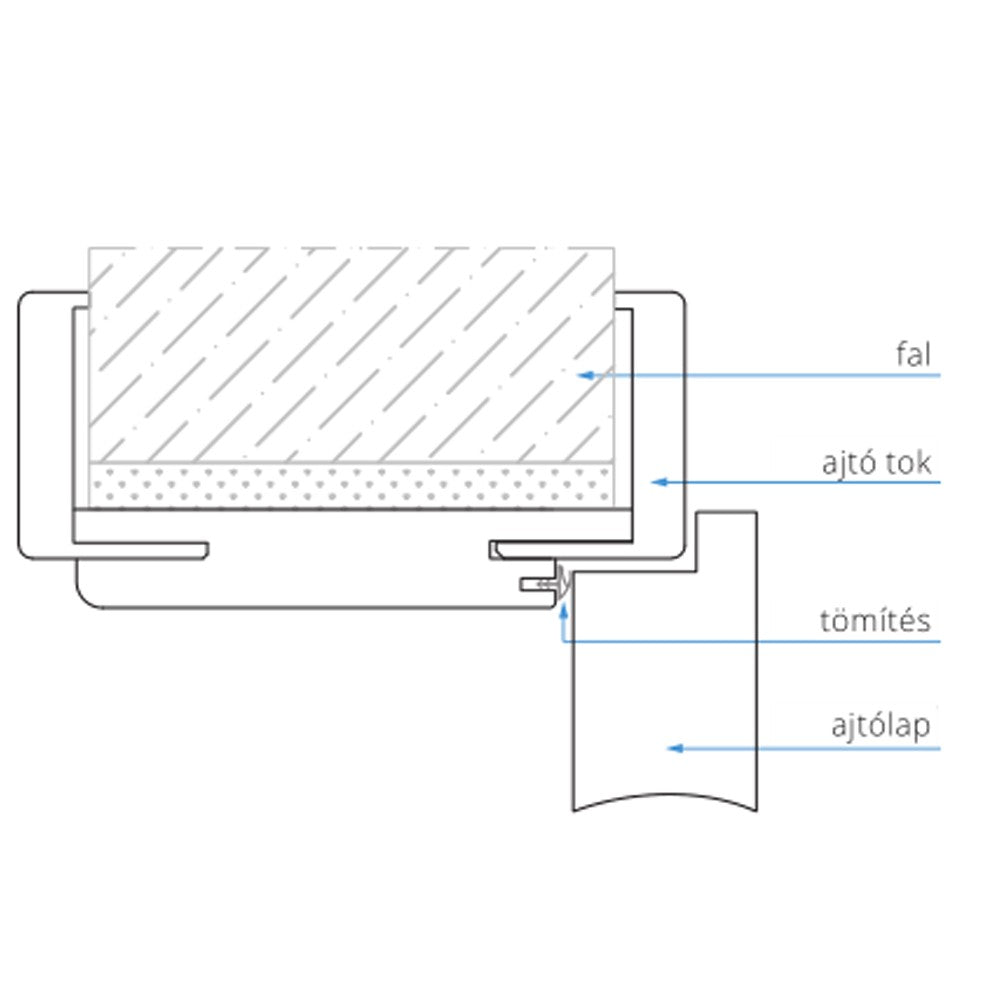 | Típus méret | Ajtó tok méretei (mm) | Falnyílás méret | ||||