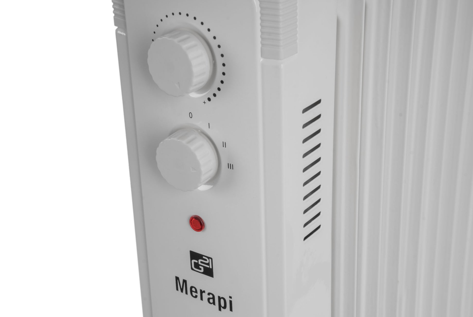 A G21 Merapi elektromos olajradiátor kifűti a nyaraló helyiségeit, egy hálószobát alváshoz, hűvös helyiségeket egy lakásban, egy műhelyt vagy garázst. Az olajradiátorok előnye a hosszabb fűtés, mert a felhalmozott hő tovább sugárzik belőle, mint a hagyományos elektromos fűtőtestekből vagy radiátorokból.