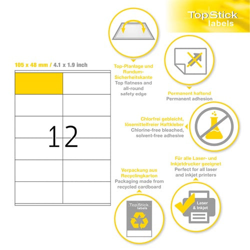 Etikett címke Topstick 105x48 mm szegéllyel 100 ív 1200 db/doboz