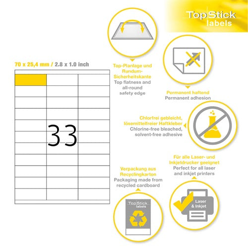 - Ideális ár- és termékcímkézéshez, címzéshez és szállításhoz, valamint adathordozók és CD-k jelöléséhez.