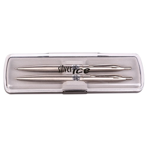 - Fémtestű golyóstoll és mechanikus ceruza díszdobozban