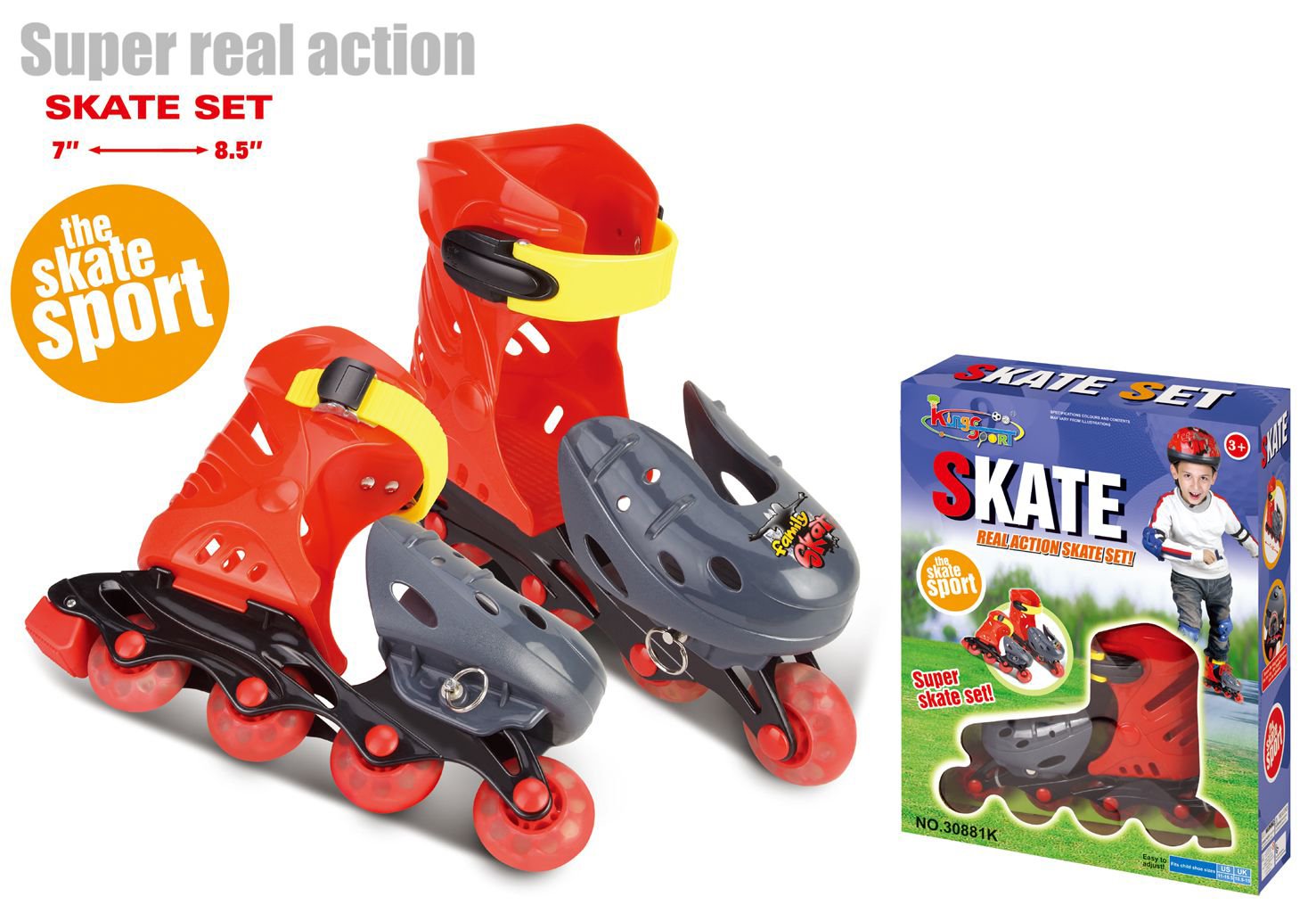 A korcsolya tartós műanyagból készült, melyet a rendes cipőre kellrávenni. Ez azért praktikus, mert nem kell külön vinni a cipőt akézben. A korcsolya kerekeit gumifelület védi, így simábbangurul és tompítja a rezgést. A fel és lecsatolás csak egy pillanat művea rögzítőpántok segítségével.