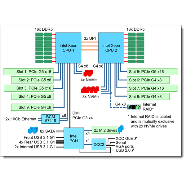 Lenovo ThinkSystem ST650 V3 ( 7D7AA02WEA ) 1x Intel Xeon Silver 4510 (12C 2.4GHz 30MB Cache/150W) 32GB (1x32GB, 4800MHz 1Rx4 DDR5 RDIMM), Memory slot: 32 (16 per processor), 8x 2.5" SAS Open bay up to 32 bays, RAID 9350-8i 2GB Flash PCIe 12Gb Adapter Placement RAID 0, 1, 10, 5, 50, 6, 60., Two onboard 10GBASE-T Ethernet RJ45 ports based, 1x 1100W (230V) Titanium Hot-Swap Power Supply, 3 Standard Fans, XCC Platinum, 3 yr onsite NBD warranty