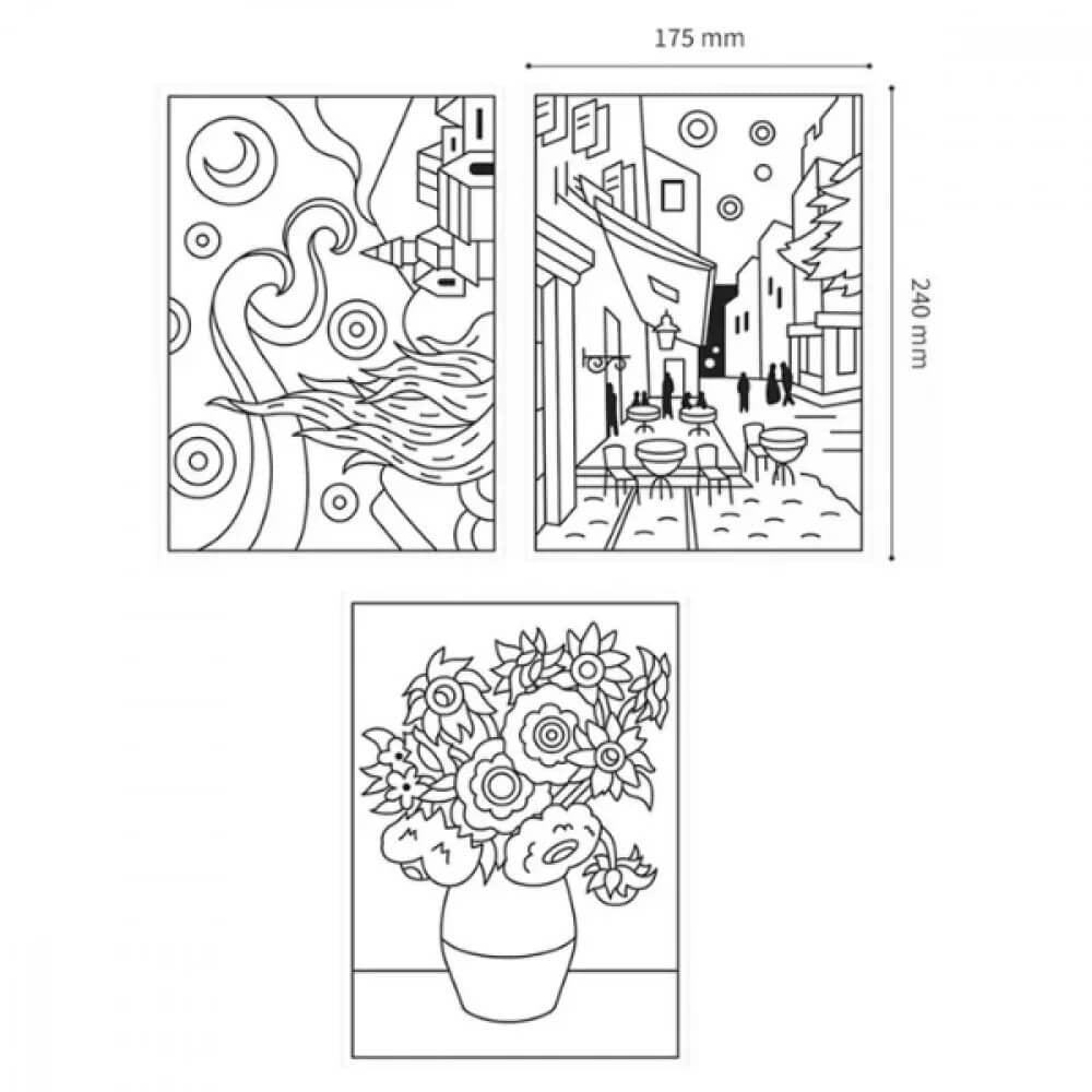 Üvegfóliafesték készlet, 2x22ml és 10x10,5ml festék, 3 kifesthető kép, Amos, Vincent van Gogh