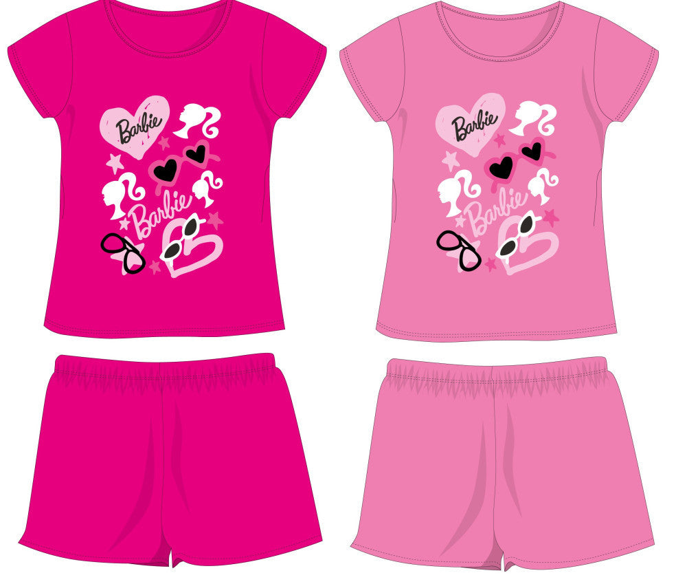 Barbie pamut nyári együttes - póló-rövidnadrág szett - rózsaszín - 134