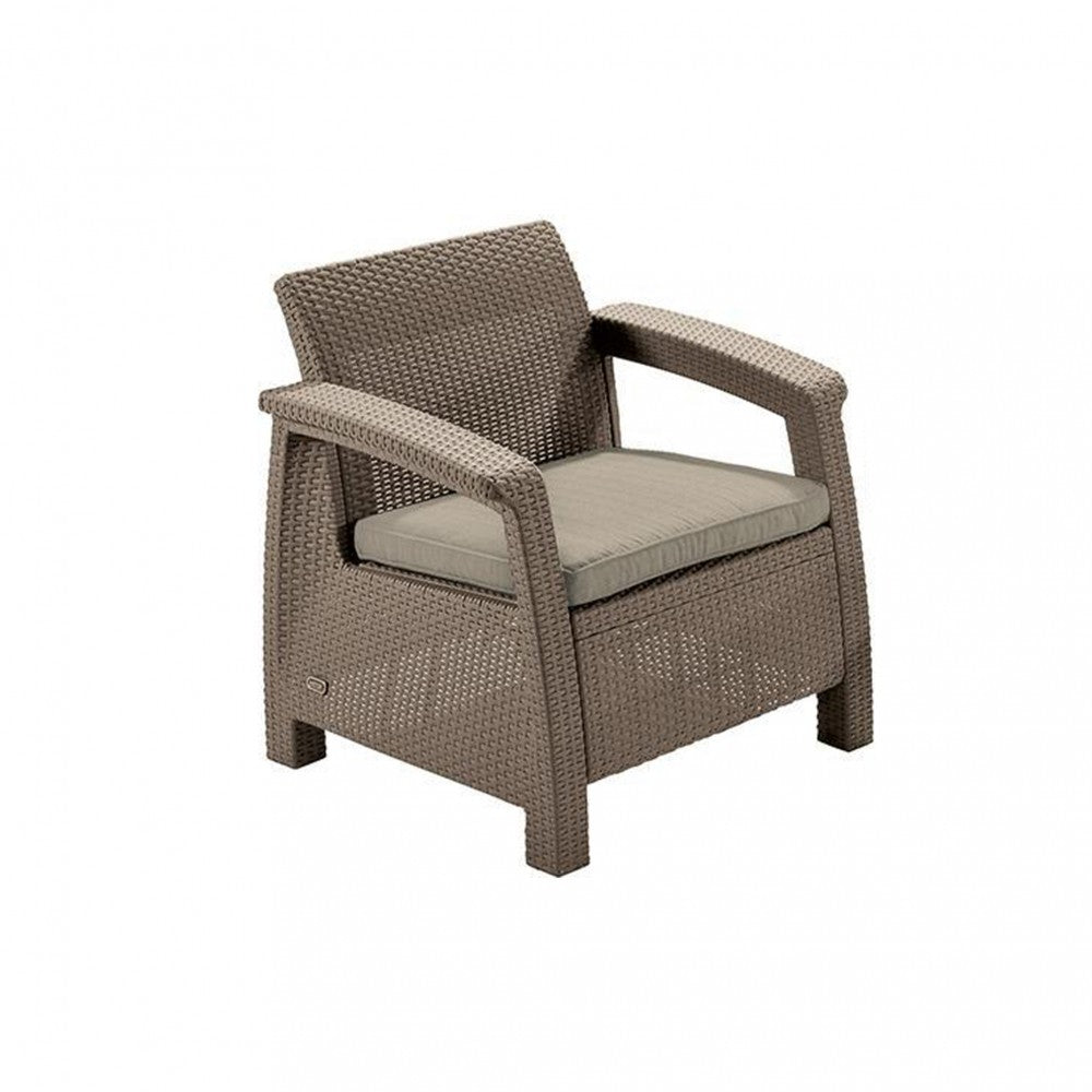 A stílusos Corfu szabadidő bútor szett maximális kényelmet garantál a felhasználók számára. A szettet modern dizájn jellemez, melyet természetes rattan fonás inspirált.A szett stabilitását és kényelmét szolid felépítésének és átgondolt szerkezetének köszönheti. A bútor szett egy kétszemélyes kanapét, két fotelt és egy asztalt tartalmaz. A Corfu termékvonal - kényelmes párnákkal - hatféle színben kapható. A bútorok ellenállnak az időjárás viszontagságainak és az UV sugárzásnak.A bútorokat a Curver gyártja, kiknek termékei megtalálhatóak még Keter és Allibert márkanév alatt is. A Corfu Set egy kiváló minőségű európai termék, amely a legjobb minőségű fröccsöntött műanyagból készült.