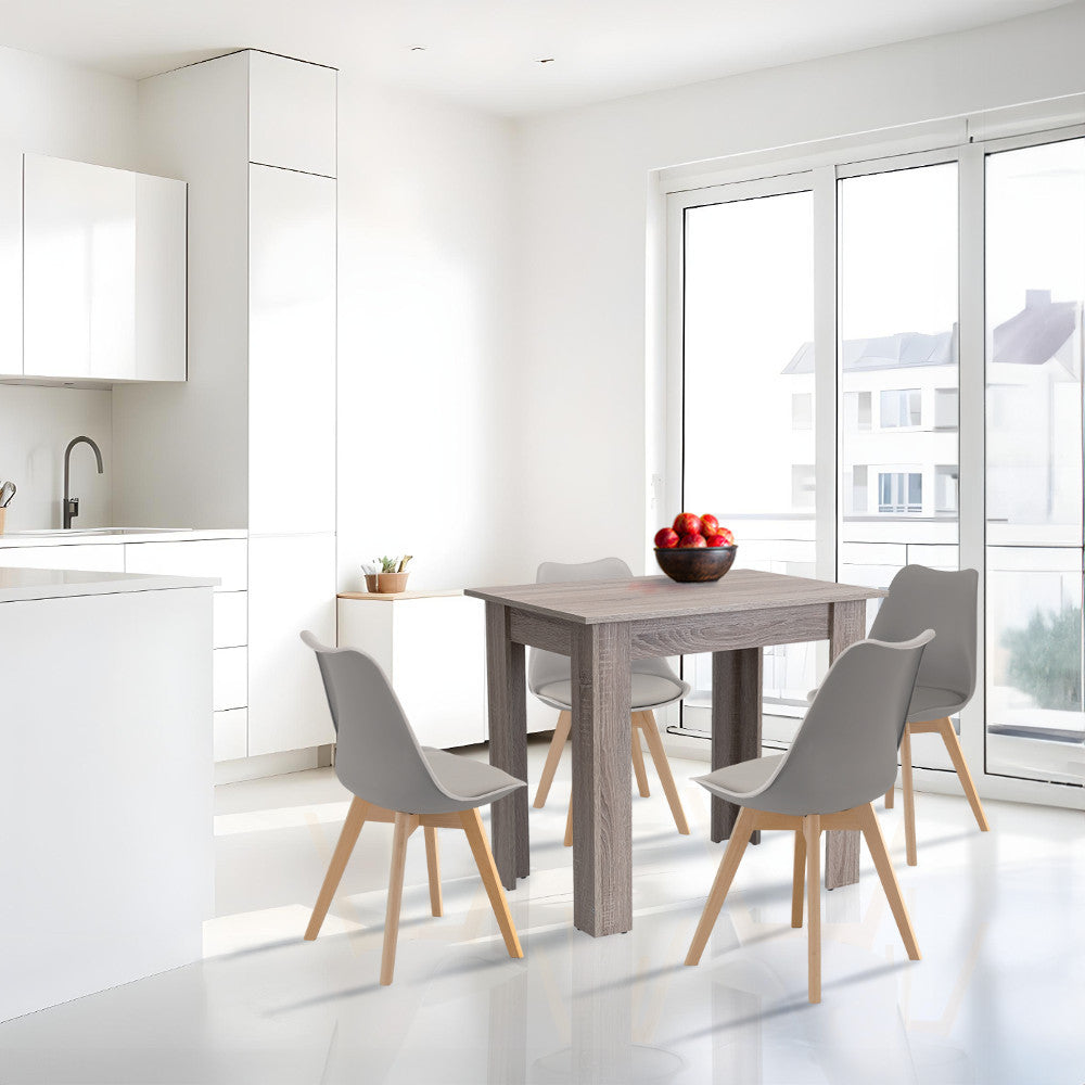 A Leziter márka Amina 4+1 étkezőgarnitúrája tökéletes választás modern lakásokba, éttermekbe és stílusos irodai konyhákba egyaránt. A garnitúra 4 db székből és 1 db asztalból, a népszerű Silla étkezőszék és a Yorki standard étkezőasztal harmonikus kombinációjából áll, egyesítve a funkcionalitást az időtlen dizájnnal. Az étkezőszett ideális 4 fő leültetésére és méretei miatt praktikusan elhelyezhető kisebb helyiségekbe is.