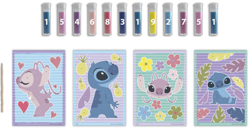 Stitch homokképkészítő szett, 4 lap, 12 adag színes homok