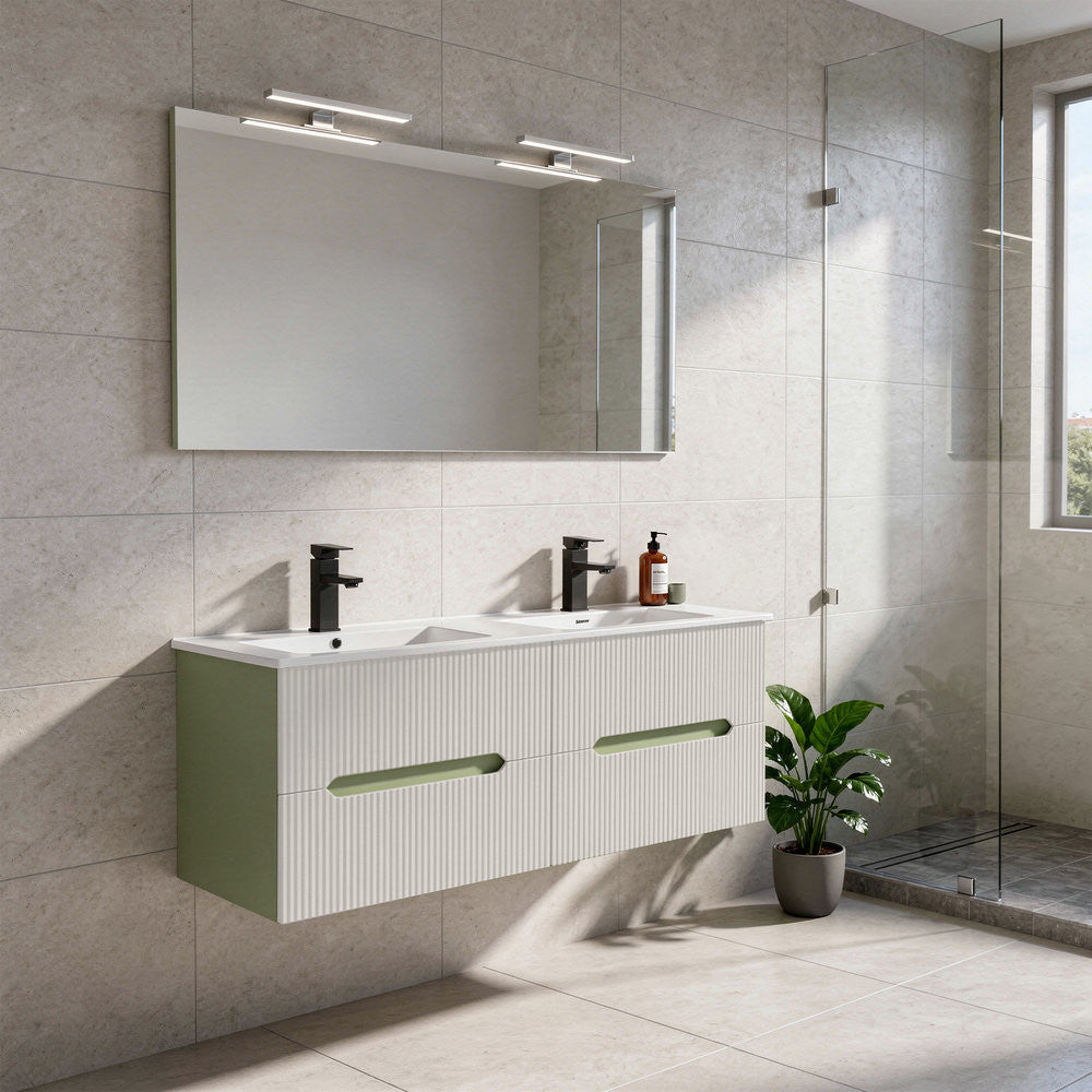 Leziter Trent Fürdőszobabútor 120 cm kerámia mosdóval (4 fiókos) tükörrel Világos zöld - Fehér