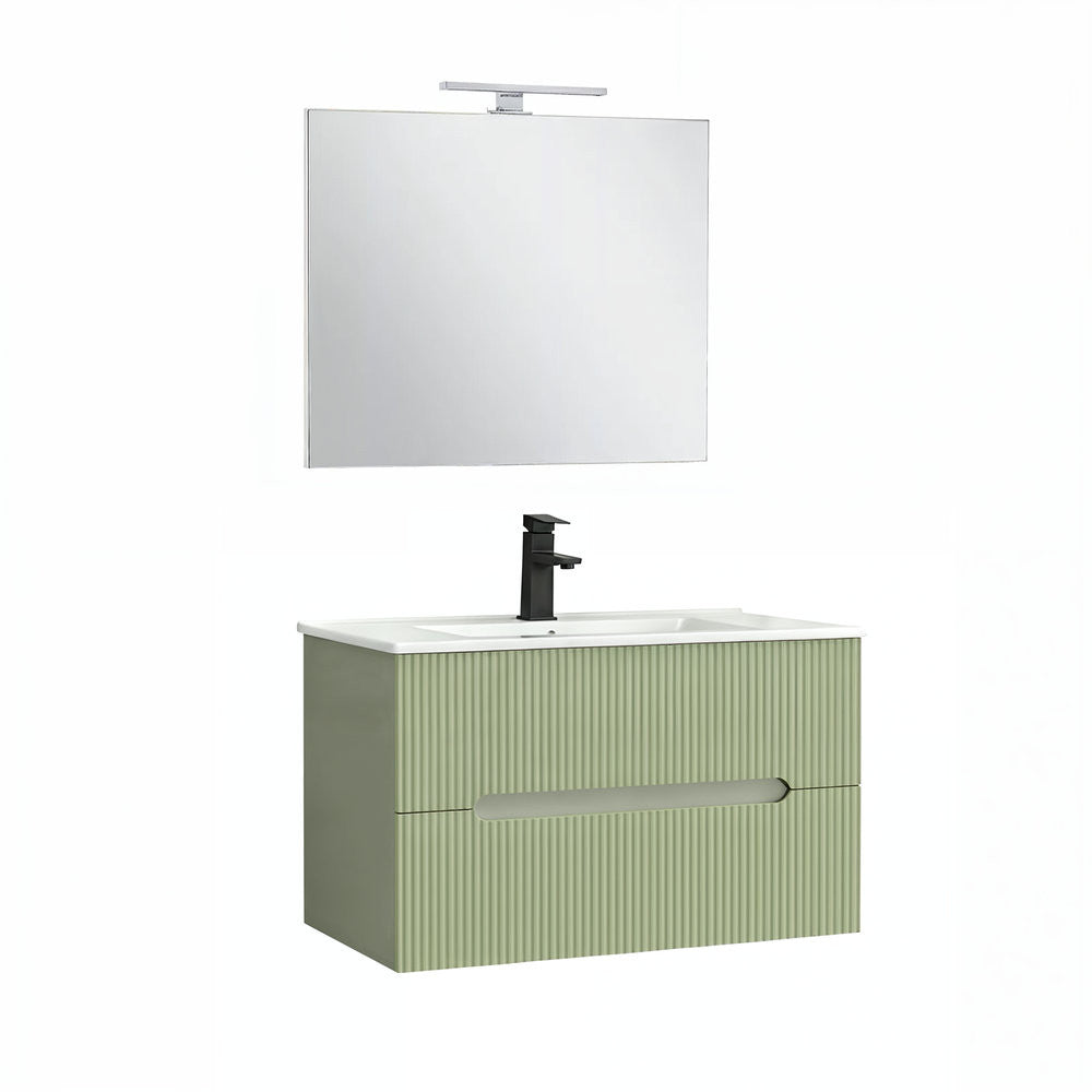 Leziter Trent Fürdőszobabútor 80 cm kerámia mosdóval (2 fiókos) tükörrel Zöld - Világos zöld