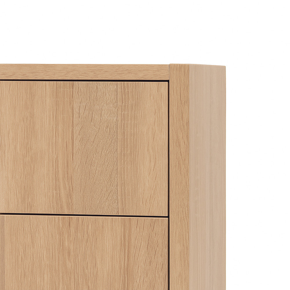 Az erős bútorlapból készült szekrény tartós és hosszú élettartamú. Felülete könnyen tisztítható, elegendő nedves ruhával áttörölni. A 2 fiókos kialakítás gondoskodik róla, hogy a tárolt tárgyak pormentesen, rendezett módon és diszkréten legyenek elhelyezve.