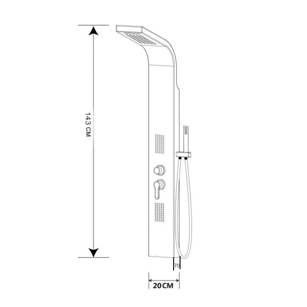 A Midi hidromasszázs zuhanypanel egy prémium minőségű zuhanyozási élményt kínáló készülék, amely a modern technológiát és a luxus kialakítást ötvözi. A zuhanypanel mérete 143x20x7 cm, amely lehetővé teszi a fürdőszoba stílusos és elegáns kialakítását, miközben elegendő teret biztosít a kényelmes zuhanyozáshoz. A zuhanypanel rozsdamentes acélból készül, ami egy tartós és ellenálló anyag, garantálva a hosszú élettartamot és a kiváló minőséget. A rozsdamentes acél vonzó megjelenést kölcsönöz a zuhanypanelnek, és könnyen tisztán tartható, így mindig csillogóan újnak tűnik majd.