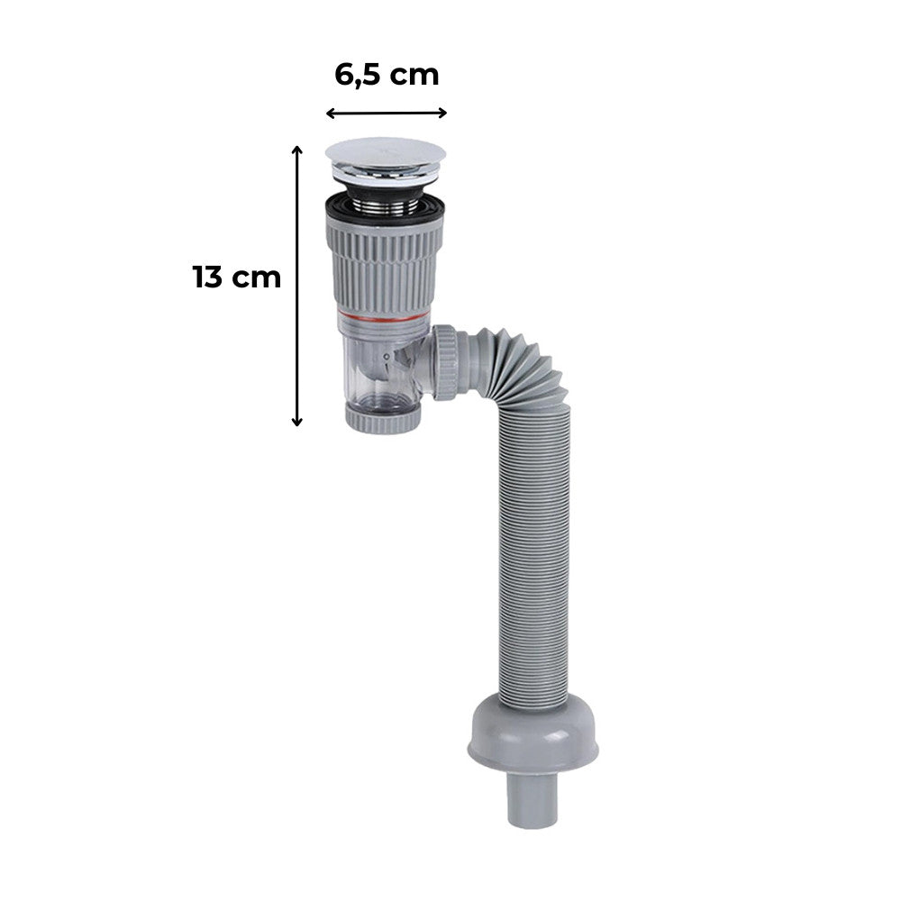 A P-alakú könyök kialakítás lehetővé teszi az átláthatóságot, így a lefolyóban rekedt tárgyak könnyedén eltávolíthatók. A beépített bűzzár hatékonyan akadályozza meg a kellemetlen szagok visszaáramlását, miközben a dugulásgátló rendszer garantálja a zavartalan működést.