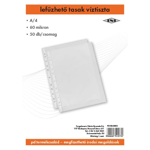 Lefűzhető tasak pd A/4 60 mic. víztiszta 50 db/csomag